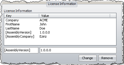 Here you can add custom license information to the license file. Custom license information allows a flexible license shema, modular licensing etc.. Your assembly can access this information with the functions available in the SDK libraries. Use the right mouse button to add assembly attribute information. Your locked assembly automatically compares this special information with the attributes of the calling assemblies. Only an assembly with matching attributes is allowed to access your locked assembly.